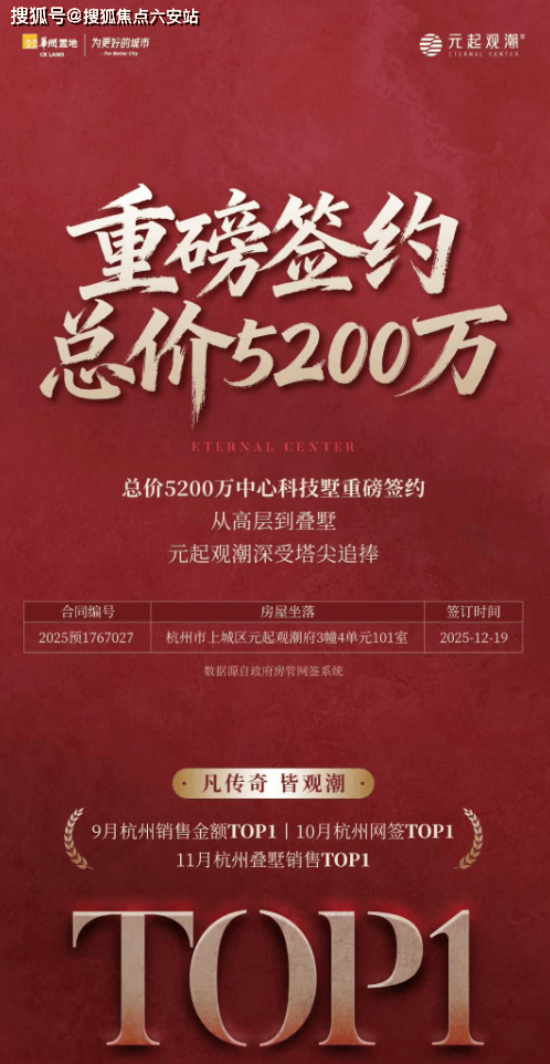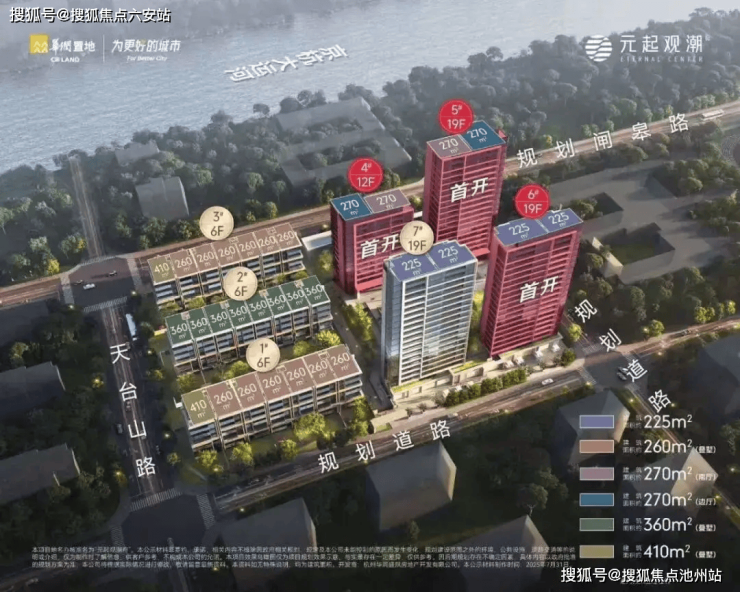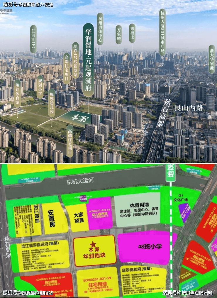 华润元起观潮府位于杭州市上城区安琪儿板块,天台山路与闸皋路交叉口东南侧,由央企华润置地开发,项目规划包括4幢12-19层高层住宅和3幢6层叠墅,产品面积段覆盖高层约225-270平方米、叠墅约260-410平方米,总户数186户(高层130户、叠墅56户),容积率2.3,楼面价50683元/平方米。