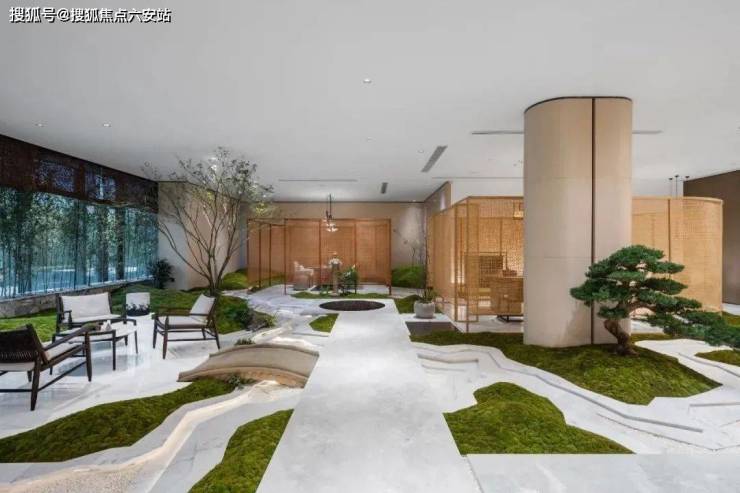 蓝城S+将潮上中南售楼处设计巧妙转化为对东方传统文化意向的茶饮空间进行创新,以竹编艺术,以及在地文化意向如西湖、蚕丝、竹林等元素进行结合,打造为了一个纯粹超脱的文化静养之地。