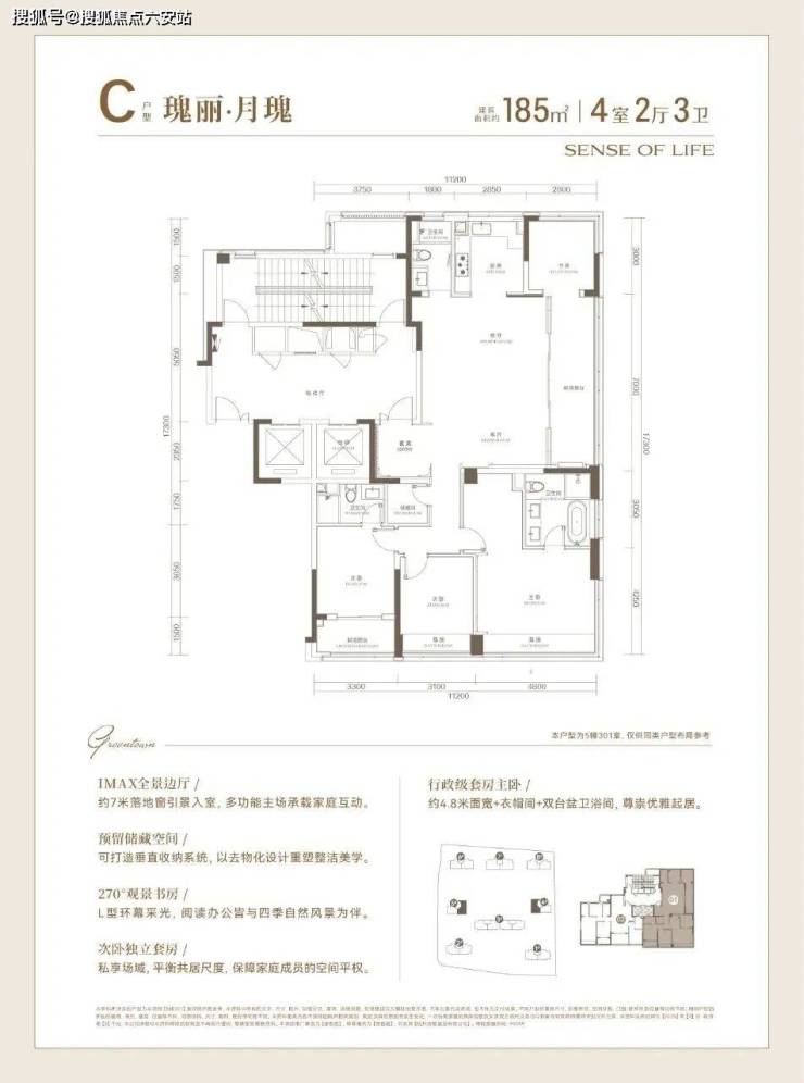 建面约185方户型,高品质的寰景奢宅: