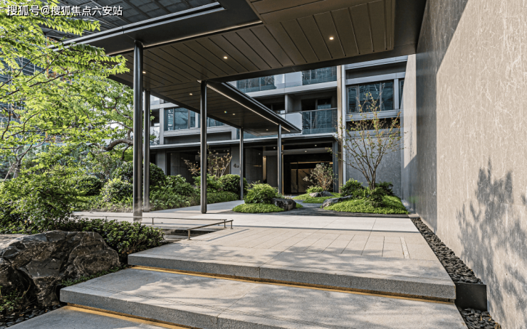 暖色调立面之上,6栋高层以竖向线条绘制出公建化的立面图腾,全景玻璃与大面积铝板演绎出一幅通透而富含质感的“全景屏”画卷,将建筑与空间美学实现深度融合。园林之中,望阙绘就了一幅江南名园与高奢酒店的意境交融。四季酒店的灵感在这里流淌,酒店式的落客区域,开启了一场关于“未来生活稀缺感”的深度探讨。