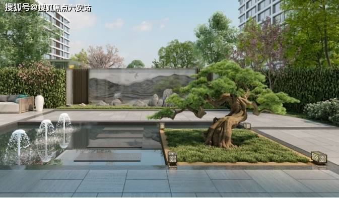 围合式布局,将《富春山居图》中的意境融入到万平中心花园之中,以入意、结庐、入画、流水、观月、乐境六境,探寻富春的至美画境,打造六重至美空间。