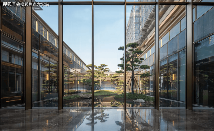 走进春棠雅韵府的实景示范区,就像是在繁华都市的喧嚣中,寻到了一处承载东方美学的人间秘境。步入下沉庭院,五棵苍劲挺拔的黑松端庄迎客,水面如凝固的碧玉,让飞瀑流云仿佛在此定格。