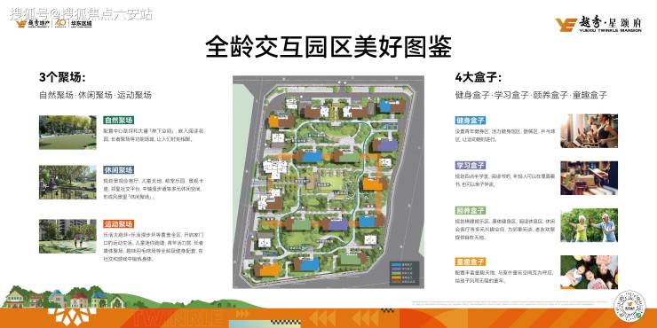 越秀星颂府的核心亮点,在于将国企品质、全龄配套、舒适户型与社群服务完美融合,打造出兼具品质与温度的活力住区。亮点一,全龄交互园区设计,项目景观导入“场景化”理念,牺牲销售面积打造14幢架空层多元主题泛会所,以“自然聚场、休闲聚场、运动聚场”3个聚场,搭配“健身盒子、学习盒子、颐养盒子、童趣盒子”4大盒子,为业主提供约5000余方户外延展生活空间,满足老人、青年、儿童的多元活动需求。
