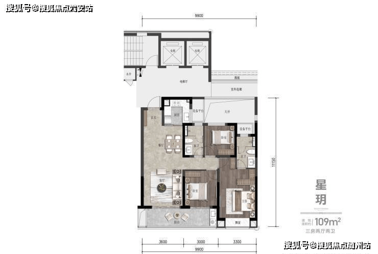建面约109㎡三房: