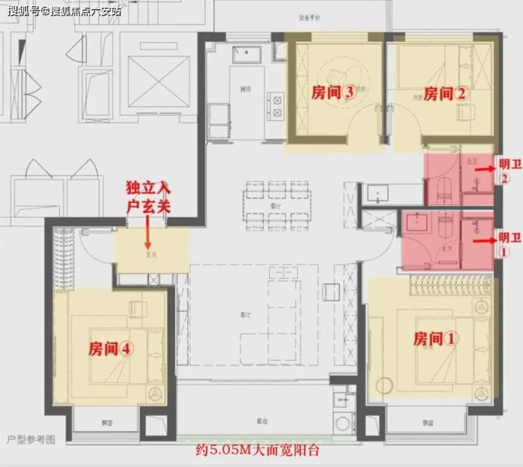同时,它还拥有一个越级配置 :即约5.05米大面宽阳台 。毕竟, 同类面积段户型,阳台面宽普遍4米左右。
