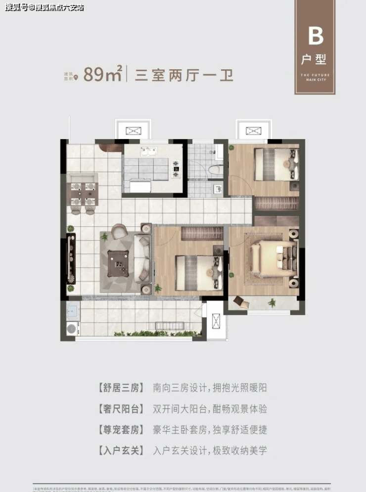 建筑面积约89㎡ 三房两厅一卫
