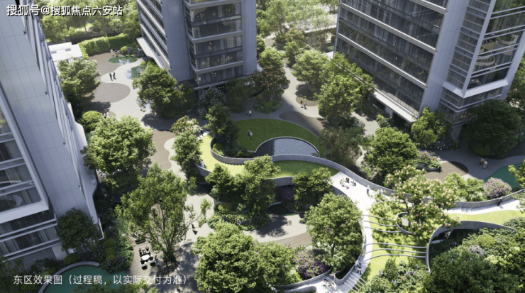 摒弃传统塔楼布局,项目以45°倾角围合建筑群,打造1.4万方“江潮绿洲”园林。泰国景观大师POK以钱塘江潮为灵感,设计下沉庭院、架空层泛会所及全龄活动区,推窗即见绿意,下楼即入花园。