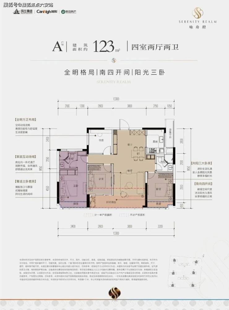 项目主力户型涵盖建面约123㎡、128㎡、139㎡、173㎡四款面积段四房户型,所有户型均以气派通厅、奢雅套房、阔朗阳台等多元场景,实现大尺度引光纳景,构建出通透舒展的大宅生活场景,契合未来精英家庭的生活品质与成长需求。