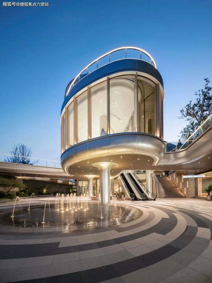 滨纷城便把建筑侧边做了圆弧角设计,南向外立面采用白色铝板、局部金属格栅等组合,金属线条用了经典9号库金色,远远望去,白金色搭配大气醒目。滨纷城又把小区主入口做得如酒店一般奢华,张扬的门头、石材景墙、水景庭院等元素都装进了入口的一方天地。