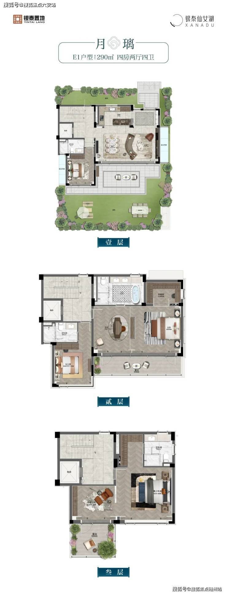 地上三层(一层3.4米、二层3米、三层2.9米+坡屋顶),地下一层(层高3.2米-6.8米)独门独户,拥有无数人垂涎的前庭、后院生活,将仙女湖畔的深林与小径美景延伸到园里来,开启庄园般的自在奢享。
