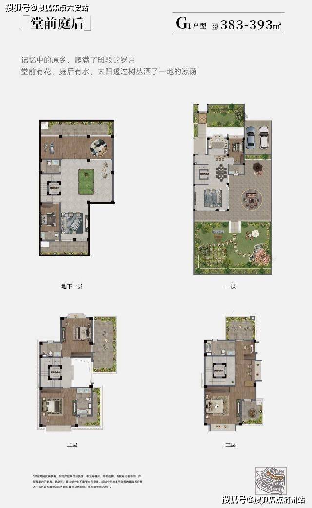 建面383–394㎡,英伦风格,南北双花园+独立车库;