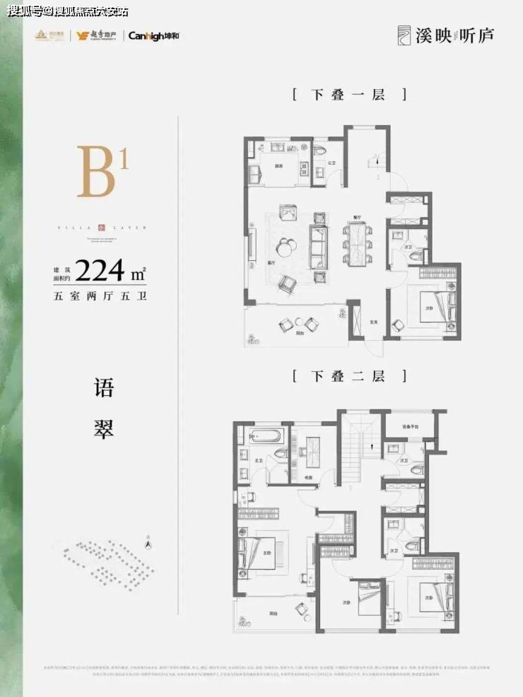约220㎡下叠,三开间朝南、五房两厅五卫,所有下叠均由南面的院子里入户,入户玄关与花园相连。