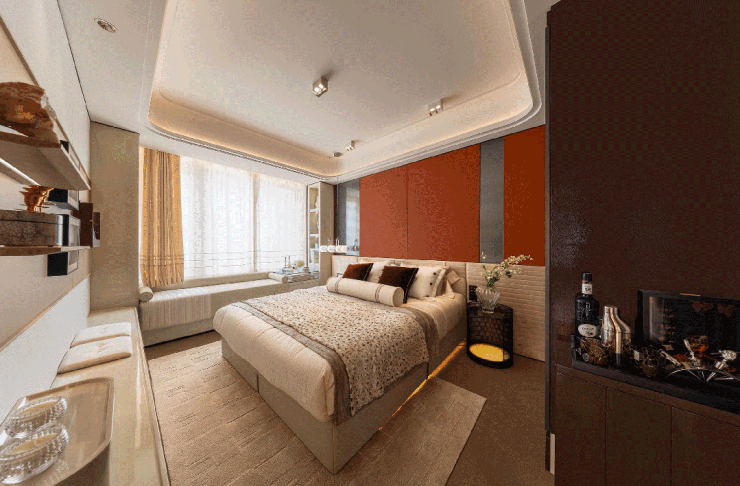 星级套房主卧:270°转角飘窗+步入式衣帽间