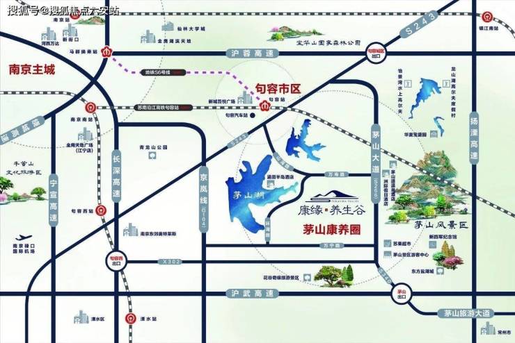 1.轨道交通:S6号线句容站南延至茅山站(位于项目一公里范围内);南沿江城际高铁,实现与南京、上海的无缝对接;宁马扬镇铁路连接南京、禄口机场、马鞍山、扬州等地。