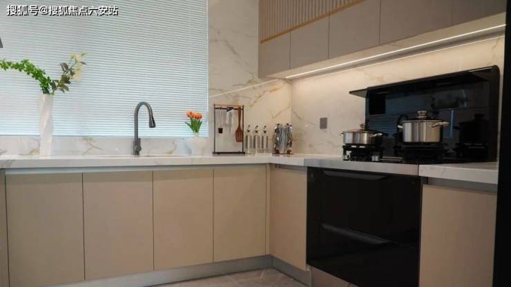 金翊·金云院首层空间,餐厨客厅一体,U型厨房设计,操作台面宽敞、明亮,水槽、炉灶、冰箱三大功能区合理分布,形成一个高效的工作三角。近距离与餐厅客厅融合,妥妥盛放一家人的欢聚时刻,稳稳拿捏全家人的胃口,正是妈妈最幸福的时刻。