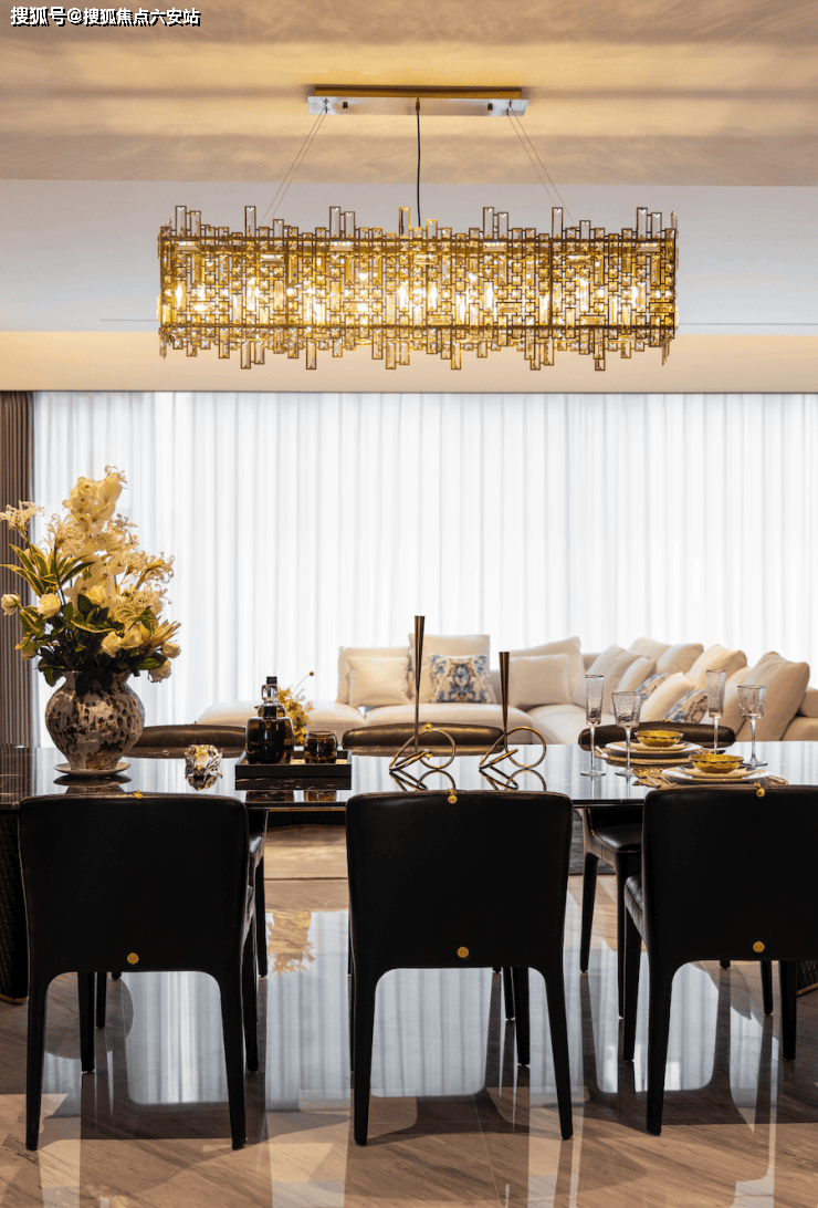 约3.6-3.7米的层高,面宽约9米多的落地窗,三层夹胶low-e玻璃,270°寰幕视界,城市的繁华尽收眼底,城市的喧嚣留在窗外。