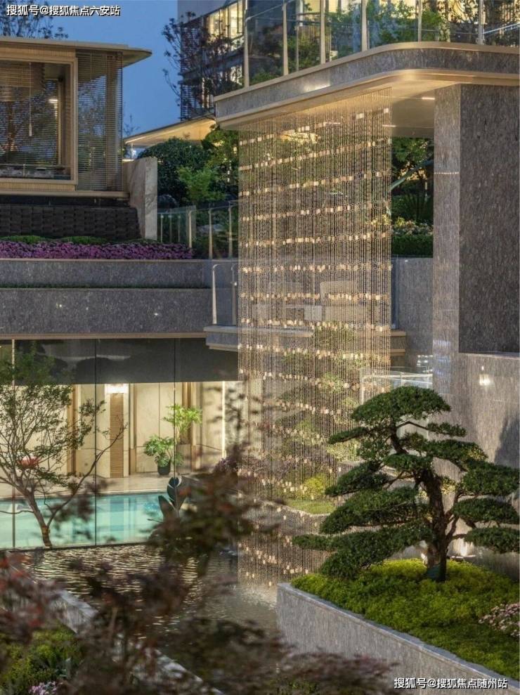 新加坡灵感园林:借鉴新加坡Parkroyal公园酒店设计,下沉庭院融入叠瀑水景、空中连廊,营造多层次生态景观。