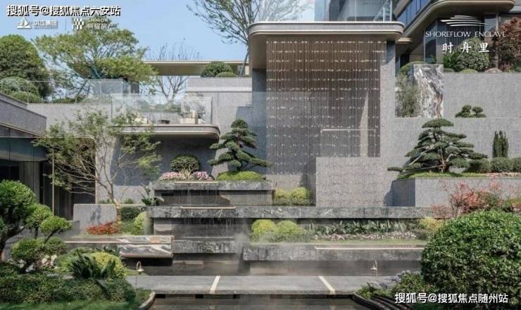 匠心归家仪式:入口以约70米宽鎏金天幕打造,结合水景与迎客松,提升社区归属感与仪式感。
