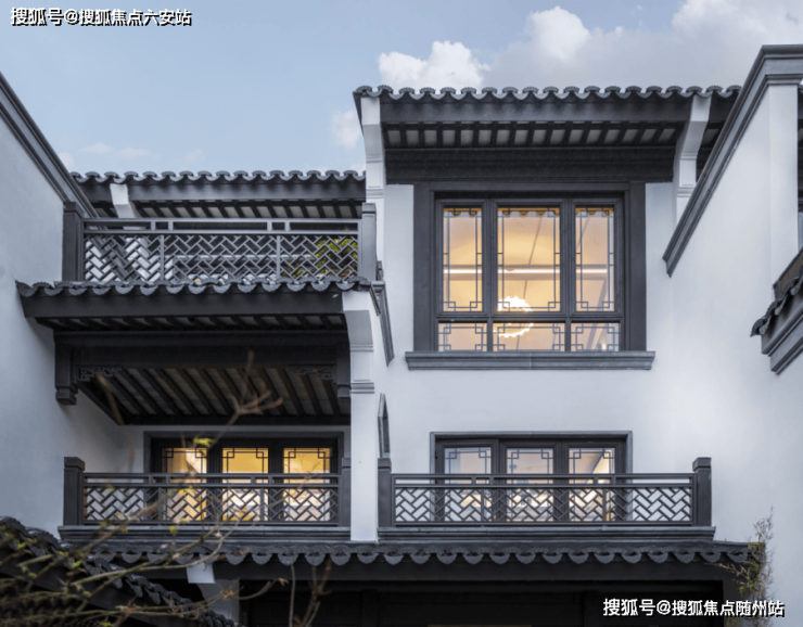 外立面:新中式建筑风格,白墙黑瓦