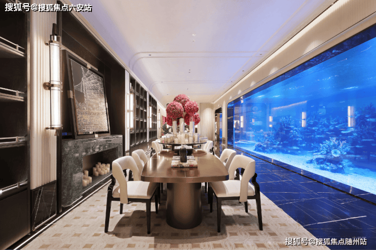 纵观会所,巨型水族馆成为整个空间的视觉焦点,游曳的鱼群诠释着"海派度假"的生活真谛。