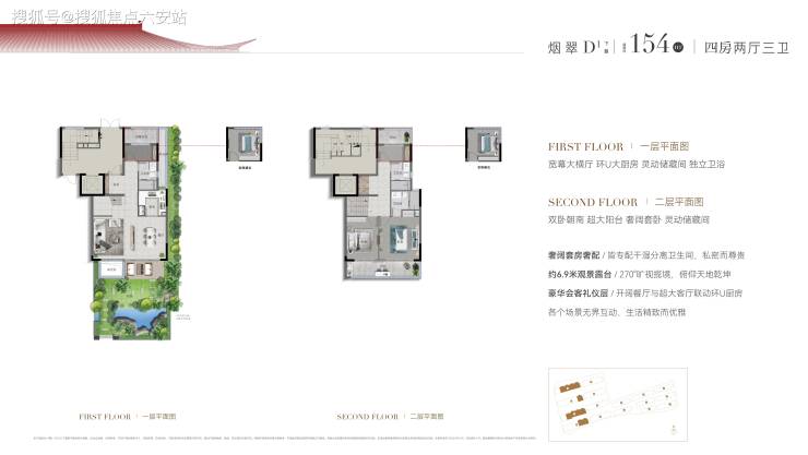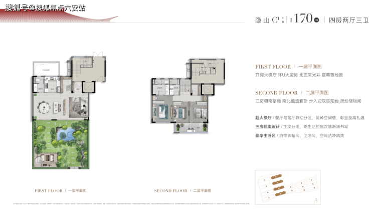 下叠:南向50-210㎡私家庭院,6.8米挑高地下室(可改酒窖/影院),三房朝南+双阳台,推窗见山景。