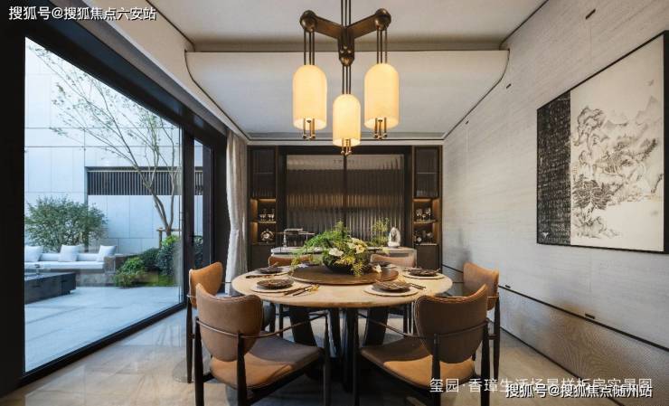 在建筑营造上,由gad张微老师执笔,延续和家园“章法天成,自然而然”理念,玺园·长流取法宋代郭熙的“三远论”,结合正脊、戗脊、博风板、悬鱼、鱼鳞瓦等经典中式元素,并巧妙运用石材、玻璃、铝板等材质,诠释中式建筑的虚实相生,平远雅致,带来丰富的视觉体验。