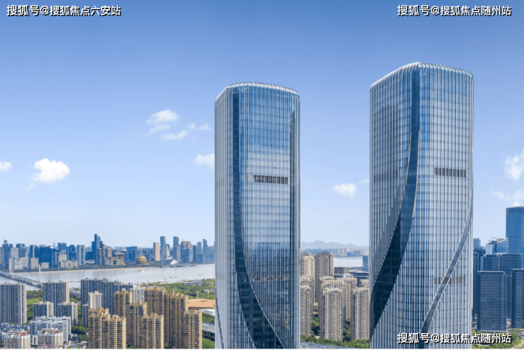 - **建筑高度**:双子塔高272米(61层),为杭州滨江区第一高楼,外立面以“钱塘潮涌”为灵感,通过铝构件与玻璃幕墙的动态组合,模拟潮汐流动的光影效果。