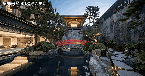 取意三大宋画,融合杭州山水精粹,园林布局「一轴八境」展开,通过假山、叠水、屏风等元素,串联起移步易景的园林场景。