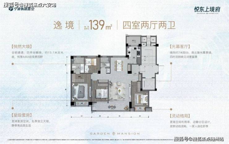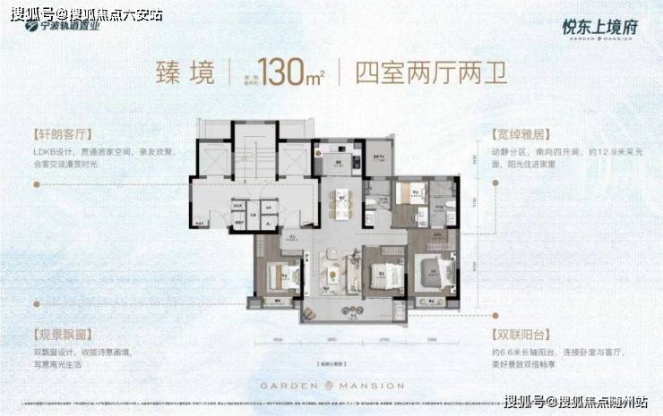 悦东上境府建面约130㎡四房产品,依托约5m向上台地优势及设计考量,让城市繁华与园林自然,皆成为推窗即享的美好日常。