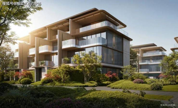 高层立面以超70%全面屏玻璃、珠光青铜铝板与弧形线条勾勒,质感比肩2000万级「奥映鸣翠」,呈现出轻盈而高级的现代美学。