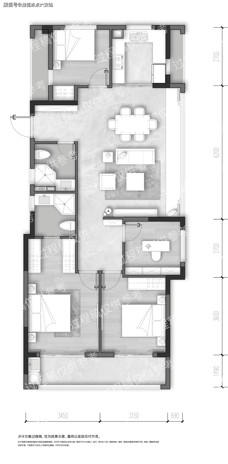 (琉翠轩建面约125方户型过程稿,仅供参考)