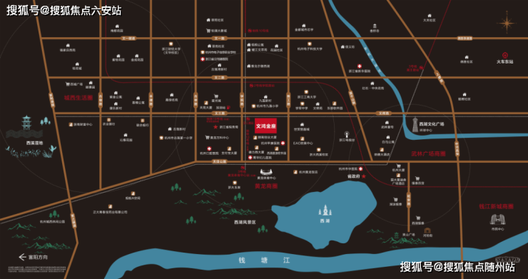 文鸿金座位于西湖区黄龙CBD核心区域,地处西湖、武林、黄龙三大商圈黄金交汇点,占尽城市核心资源。项目距离西湖景区仅1.5公里,推窗可见宝石山、老和山翠色,茶余饭后即可漫步西湖边,享受杭州最稀缺的自然生态资源。
