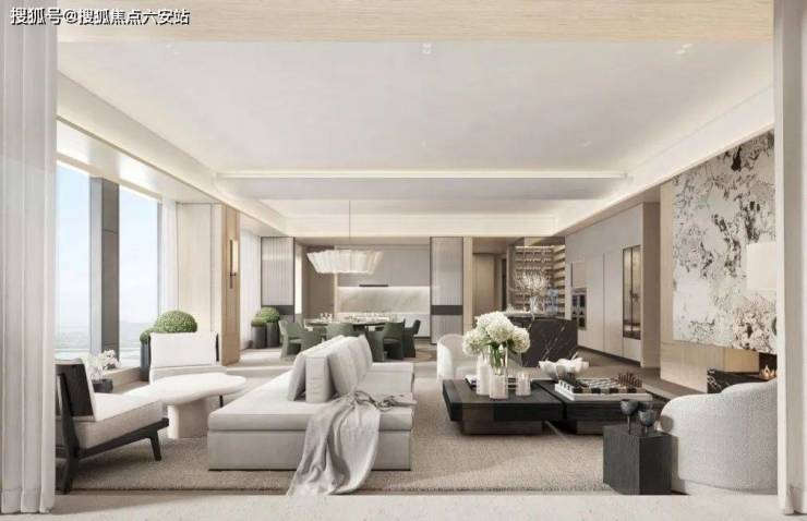 全系采用约150万/台三菱全进口电梯,定制双开装甲门;在室内装标上,更是采用了国际一线的奢装品牌:定制劳芬、当代、卡德维、美诺等;在智能化配置上,采用了电动晾衣架、电热毛巾架、电动窗帘,衣物护理机,真正与国际化、科技化的顶流生活接轨。
