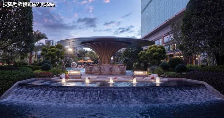 中央水景实图:景观灵感源自著名珠宝品牌CHAUMET,以“繁花造型珠宝”为设计理念,将大胆、华丽、创新于景观之中,形成特有的珠宝风格景观设计系统。