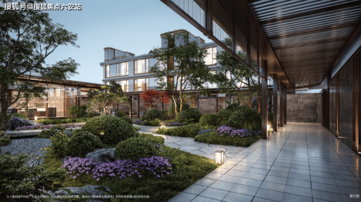 细节匠心无处不在:小区入口采用云松绿奢石影壁墙,金色镶边搭配灯光映射,宛如流动的湖水,彰显高端质感;近百米风雨连廊贯穿园区,不仅遮风挡雨,更成为业主社交停留的景观空间;公区增设专属电梯,方便业主雨雪、炎热天气从地下归家,尽显人性化关怀。