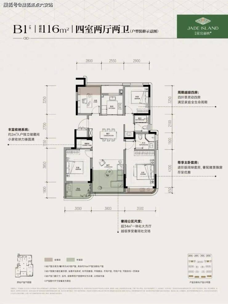 建面约116方4房2厅2卫户型,是目前杭州唯一在售的同等面积做到“4房+2卫+储藏室”的神户型。