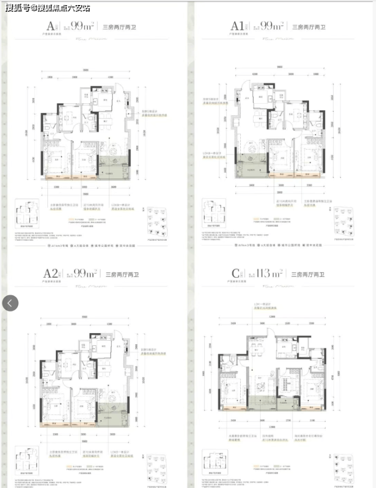 建面约99㎡、113㎡户型是三房设计,建面约108㎡、120㎡、128㎡、139㎡户型是四房设计。封包阳台后,每个户型都拥有超高得房率!!同时飘窗上方玻璃提升了四玻两腔!隔音及保温性更好。