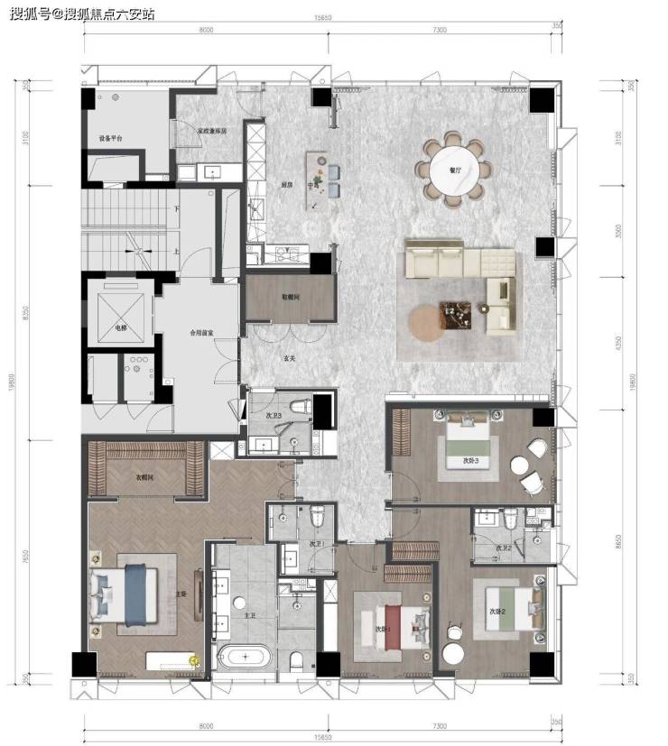 超阔空间尺度:大平层采用大开间、短进深格局,约 24 米南向环幕视野,部分户型享西湖景观;写字楼标准层高3.8 米,层层都有空中花园,提升办公舒适度。