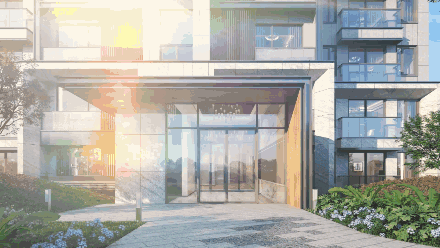 洋房产品以长方形为基本构成要素,运用了大量横向贯通的建筑元素和设计手法,水平分割大面积玻璃幕墙形成带状窗效果,使得室内更显宽敞。更好的体现了多层建筑的舒展性和延伸性,进一步削弱了建筑高度对人带来的压迫感。