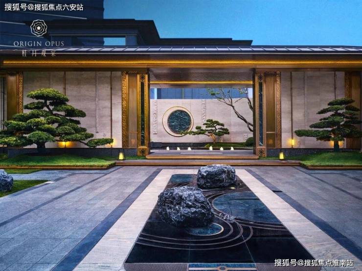 月影江南 灵韵入境:入户两侧水景清泉涌动,婉转迂回,一座精致的宋风美学馆展示在眼前。透过门框衬映出满月景墙,甄选名贵奢石,在虚实掩映间延续着东方诗意山水的写意画卷。