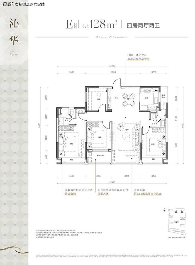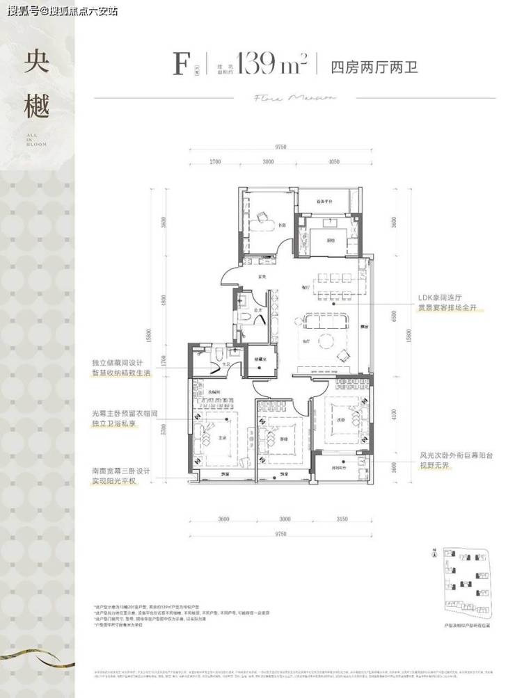 139㎡四房:南向面宽13.5米+独立储藏室。