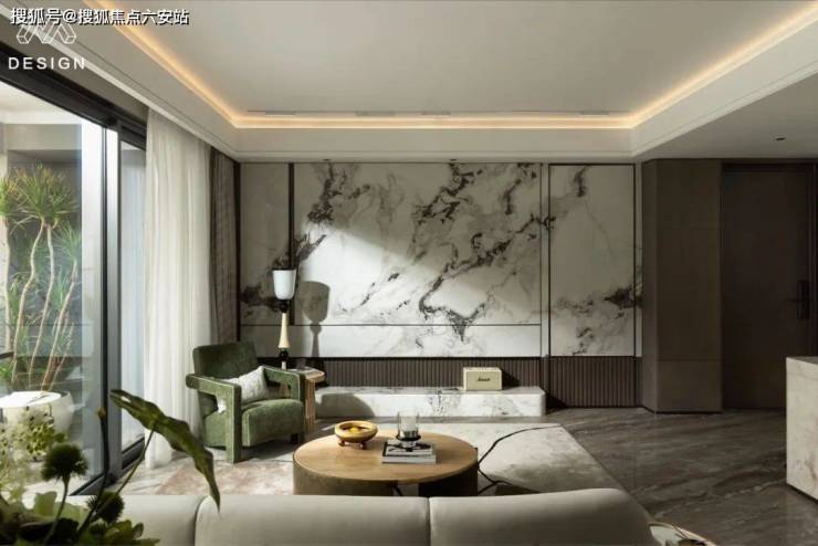 比如这一次的“建发式”大门一如既往,南北地块做了双大门设计,门头宽度达到约61米(含景墙)。入户做足了仪式感:重檐悬山式门楼、芝麻黑石材地雕、“鱼跃龙门”御道,两侧伫立着石狮、影壁、跌水、绿岛......还有两株精挑细选寓意“财富与健康”的罗汉松。