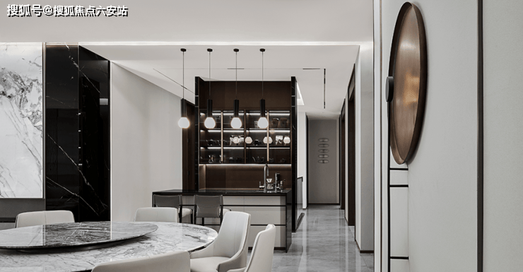 与宁静相视,得以感受从身体到心灵的放松状态,在此寻得一场安身和疗愈。深浅皮革包裹出墙面适宜的情感温度,金属嵌条穿越其间,在木质地面的催化下,似乎有着包容万千的气韵。