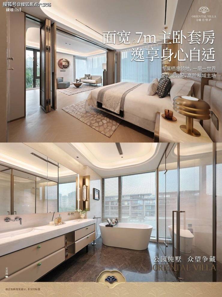 叠墅:四房五卫全套房设计,上叠11米面宽观星庭院,下叠7.5米阔境客厅。