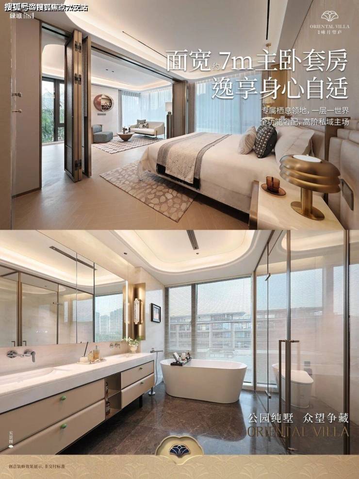 叠墅:四房五卫全套房设计,上叠11米面宽观星庭院,下叠7.5米阔境客厅。