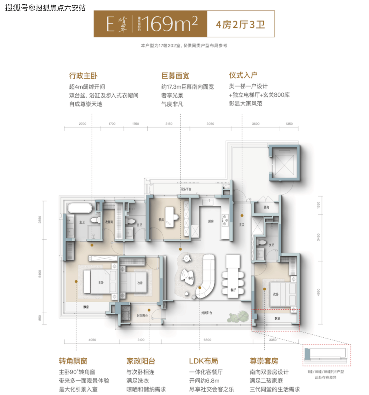 建面约105-110㎡三房入门主力户型,全屋设计了玄关“800库”、电视背景墙等;建面约125-139㎡四房改善户型,四开间朝南,南向面宽达约13.8米以上;约139㎡户型做到了各房间面宽均超3米,尺度舒适;建面约169㎡四房拥有约17.3米的巨幕南向面宽,部分房间可设计为双套房。