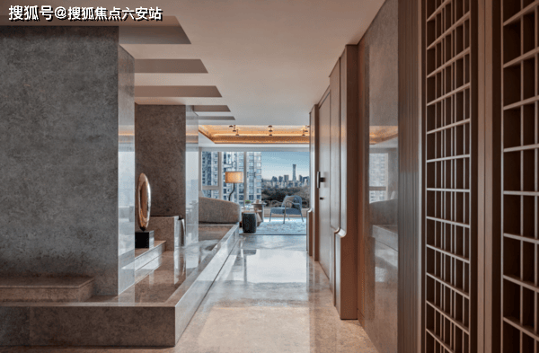 社交核:20㎡玄关采用双动线设计,满足主人归家礼仪与访客接待需求