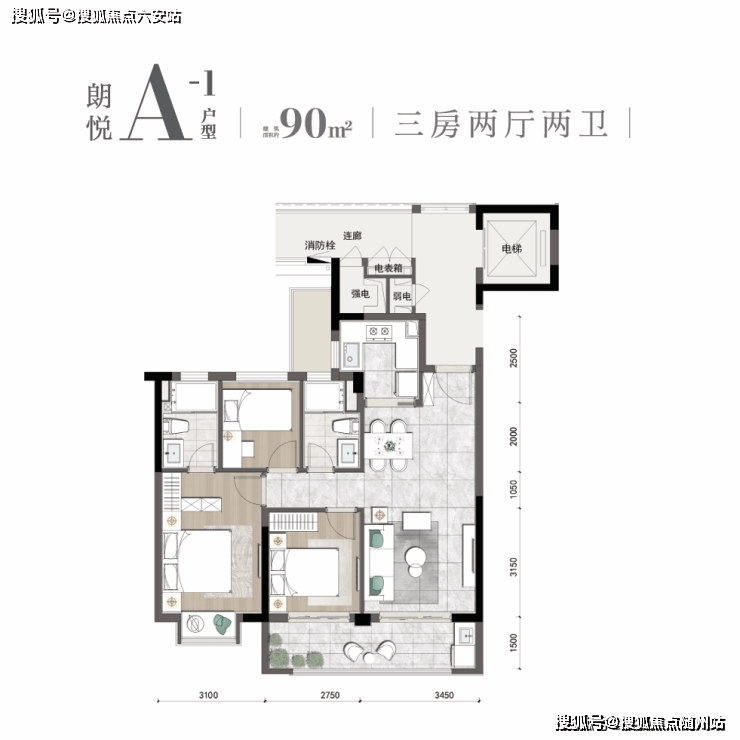当然,其他的户型也是彩蛋满满,其中很受欢迎的建面约90㎡小户型,宽阔客厅、双阳台、双卫、主卧大套间设计,非常实用,过目难忘。