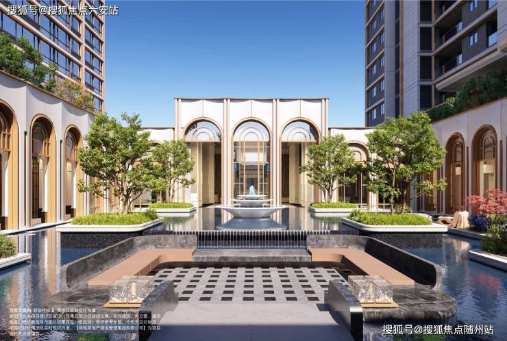 奢阔门庭:约40米星级酒店式归家大堂,搭配潮水雕塑与罗汉松景观;