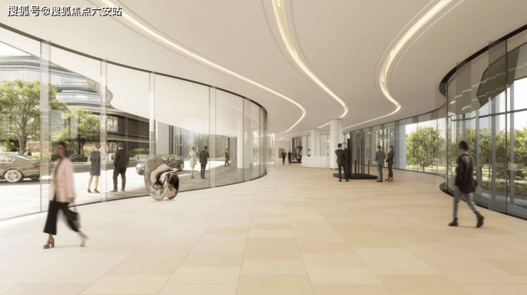 创新的城市大堂,呈现3座超级室外大堂+24座超级室内大堂的独特结构,匹配高技派标志性入口大雨棚,打开城市与建筑的边界。国内罕见的汽车开入建筑内的殿堂迎宾级落客区、约40米直径的壮观环岛落客区,让人可以从城市各方一直通达到内部大堂。